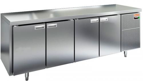 Морозильный стол HICOLD SN 1111/BT O выполнен из нержавеющей стали марки AISI-304, которая полностью соответствует санитарным нормам. Верх стола накрыт столешницей. Пространство между внутренней и наружной стенкой заполнено пеной-теплоизолятором. Морозильный стол HICOLD SN 1111/BT O имеет четыре дверки для доступа в пространство полезного объема. Внутри стола расположен воздухоохладитель с вентиляторами, которые обеспечивают равномерное и быстрое распределение холодного воздуха внутри полезного объема стола. В полезном объеме предусмотрены полки-решетки для укладки продуктов в герметичной упаковке. Нагрузка до 50 кг на каждую полку.