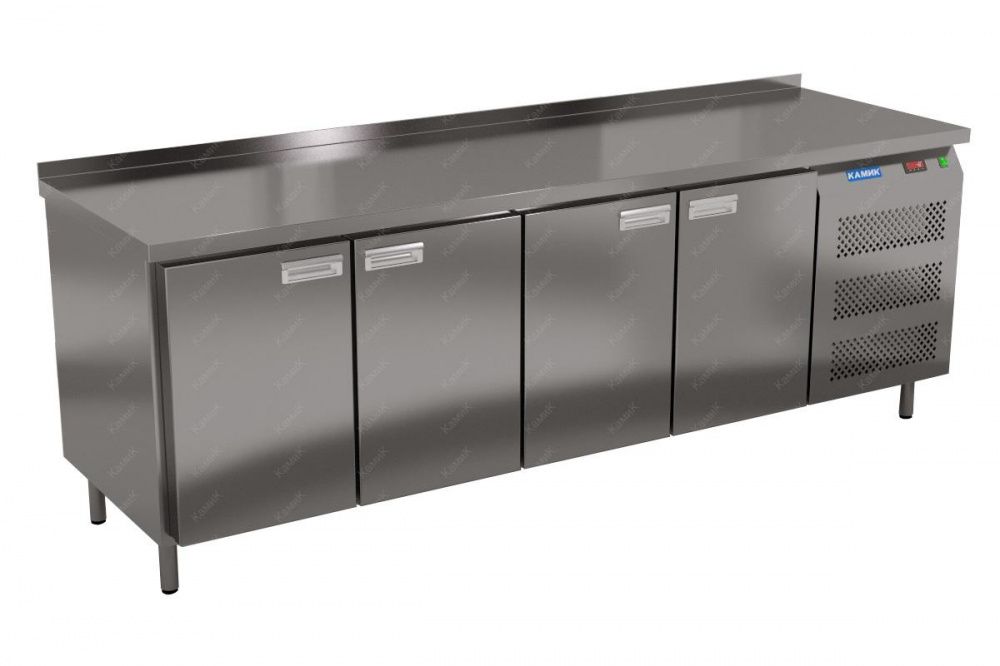 Морозильный стол КАМИК СМ-44236 используется на предприятиях общественного питания и торговли для заморозки и длительного хранения продуктов, полуфабрикатов и мороженого. Конструкция разделена на секции, каждая из которых оборудована сетчатой полкой и парой направляющих. Корпус выполнен из нержавеющей стали AISI 430 толщиной 1 мм, столешница - из нержавеющей стали AISI 304 толщиной 1,5 мм.