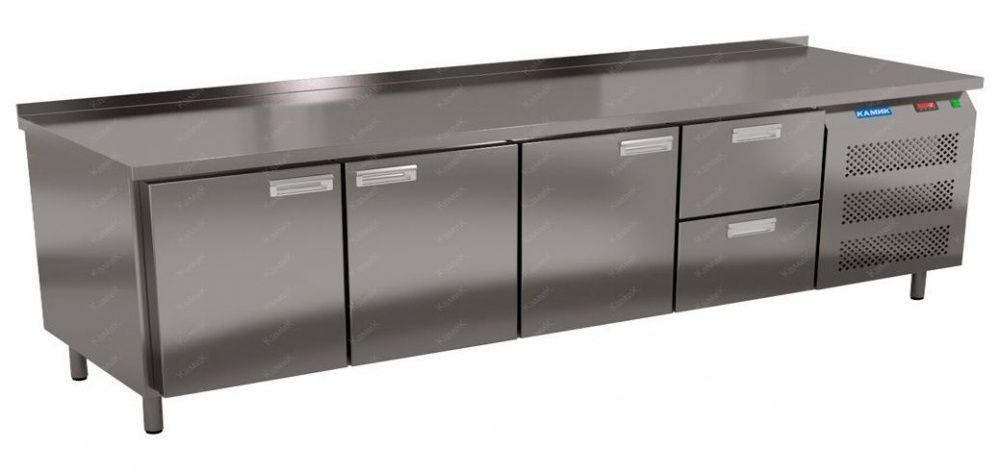 Морозильный стол КАМИК СМ-Т-32236 используется на предприятиях общественного питания и торговли для заморозки и длительного хранения продуктов, полуфабрикатов и мороженого, а также для установки теплового оборудования на него. Конструкция разделена на секции, каждая из которых оборудована сетчатой полкой и парой направляющих. Корпус выполнен из нержавеющей стали.