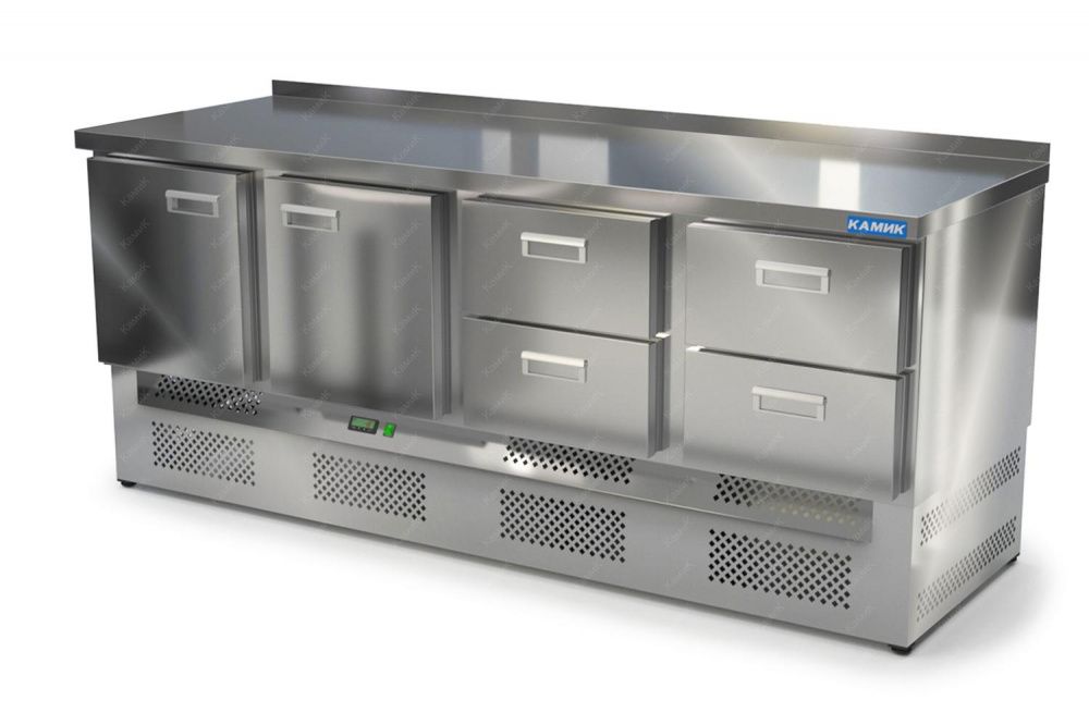 Морозильный стол КАМИК СМ-24207Н используется на предприятиях общественного питания и торговли для заморозки и длительного хранения продуктов, полуфабрикатов и мороженого. Конструкция разделена на секции, каждая из которых оборудована сетчатой полкой и парой направляющих. Корпус выполнен из нержавеющей стали AISI 430 толщиной 1 мм, столешница - из нержавеющей стали AISI 304 толщиной 1,5 мм.