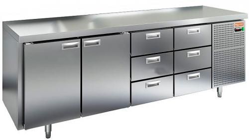 Морозильный стол HICOLD GN 1133/BT O выполнен из нержавеющей стали марки AISI-304, которая полностью соответствует санитарным нормам. Верх стола накрыт столешницей. Пространство между внутренней и наружной стенкой заполнено пеной-теплоизолятором. Морозильный стол HICOLD GN 1133/BT O имеет 2 дверки и 6 выдвижных ящиков для доступа в пространство полезного объема. Внутри стола расположен воздухоохладитель с вентиляторами, которые обеспечивают равномерное и быстрое распределение холодного воздуха внутри полезного объема стола. В полезном объеме предусмотрены полки-решетки для укладки продуктов в герметичной упаковке. Нагрузка до 50 кг на каждую полку.