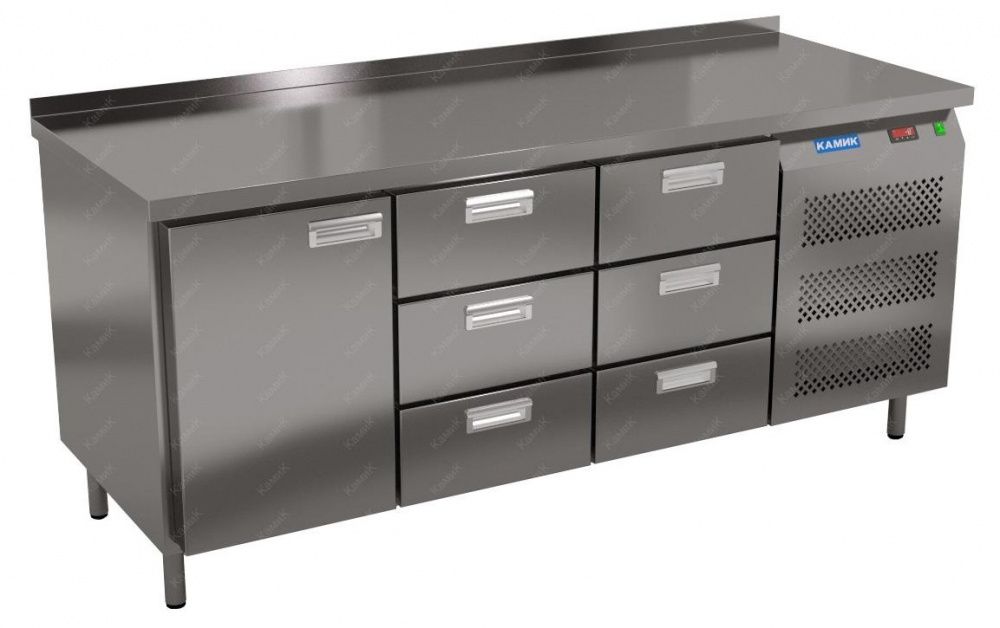 Морозильный стол КАМИК СМ-16238 используется на предприятиях общественного питания и торговли для заморозки и длительного хранения продуктов, полуфабрикатов и мороженого. Конструкция разделена на секции, каждая из которых оборудована сетчатой полкой и парой направляющих. Корпус выполнен из нержавеющей стали AISI 430 толщиной 1 мм, столешница - из нержавеющей стали AISI 304 толщиной 1,5 мм.