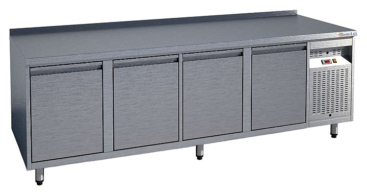 Морозильный стол под пекарские листы Gastrolux СМК4-257/4Д/Sp серии Special предназначен для раскатки теста и обработки ингредиентов для приготовления блюд, заморозки и хранения продуктов, полуфабрикатов и мороженого, а также размещения пекарских листов в секциях на предприятиях общественного питания и торговли. Корпус и рабочая поверхность выполнены из нержавеющей стали AISI 430, задняя стенка - из оцинкованной стали с полимерным покрытием RAL.