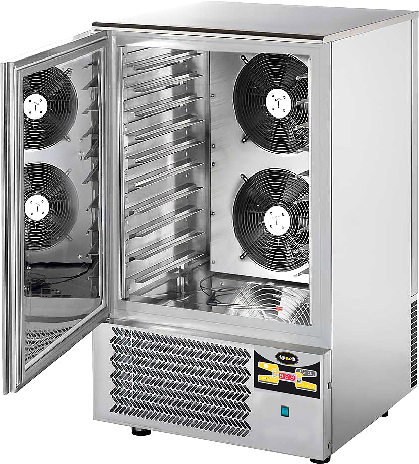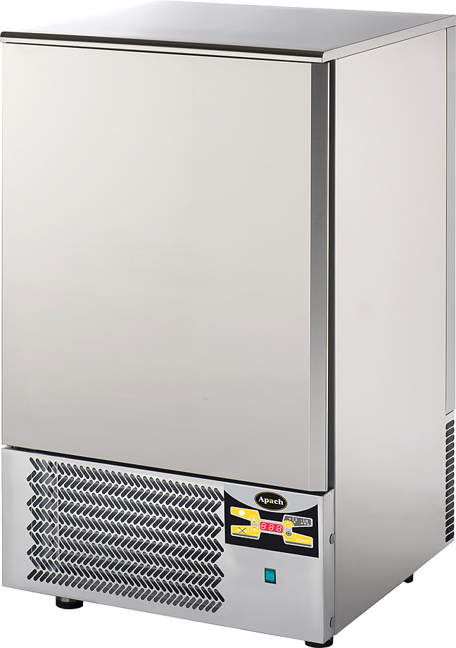 Шкаф шоковой заморозки Apach SH10 предназначен для быстрой заморозки продуктов и приготовленных блюд на предприятиях общественного питания и торговли. Модель с электронной панелью управления оснащена встроенным холодильным агрегатом, самозакрывающимися дверями с магнитным уплотнителем и регулируемыми по высоте ножками. Корпус и внутренняя камера выполнены из нержавеющей стали AISI 304, днище, потолок и тыльная часть - из оцинкованного листа, изоляция - из пенополиуретана толщиной 60 мм.