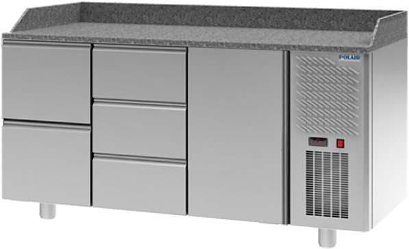 Холодильный стол для пиццы POLAIR TM3pizza230-G серии Grande используется на предприятиях общественного питания, торговли и пищевых производствах для раскатки теста, хранения и обработки ингредиентов перед приготовлением пиццы. Данная модель обеспечивает механическую прочность, термоизоляцию и герметичность. Материал внешнего и внутреннего корпуса, дверцы и ящиков - высококачественная нержавеющая сталь, материал столешницы и борта - натуральный гранит, материал теплоизоляции - пенополиуретан.