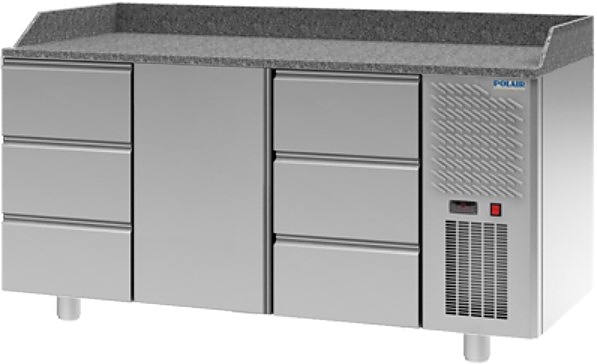 Холодильный стол для пиццы POLAIR TM3GNpizza303-G серии Grande используется на предприятиях общественного питания, торговли и пищевых производствах для раскатки теста, хранения и обработки ингредиентов перед приготовлением пиццы. Данная модель обеспечивает механическую прочность, термоизоляцию и герметичность. Материал внешнего и внутреннего корпуса, дверцы и ящиков - высококачественная нержавеющая сталь, материал столешницы и борта - натуральный гранит, материал теплоизоляции - пенополиуретан.