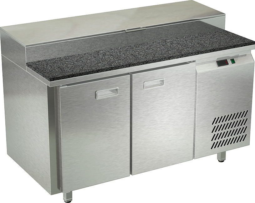 Холодильный стол Техно-ТТ СПБ/П-327/12-1307 используется на предприятиях общественного питания, торговли и пищевых производствах для обработки ингредиентов, используемых для приготовления пиццы, а также охлаждения и кратковременного хранения продукции. Каждая секция оснащена сетчатой полкой и направляющими, двери оснащены доводчиками (пр-во Польша). Материал корпуса - нержавеющая сталь AISI 430, материал столешницы - гранитная крошка (толщина 20 мм), материал дна и задней панели - оцинкованная сталь.