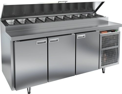 Охлаждаемый стол для пиццы HICOLD PZ1-111/GN (1/3) выполнен из нержавеющей стали . Верх стола накрыт столешницей.