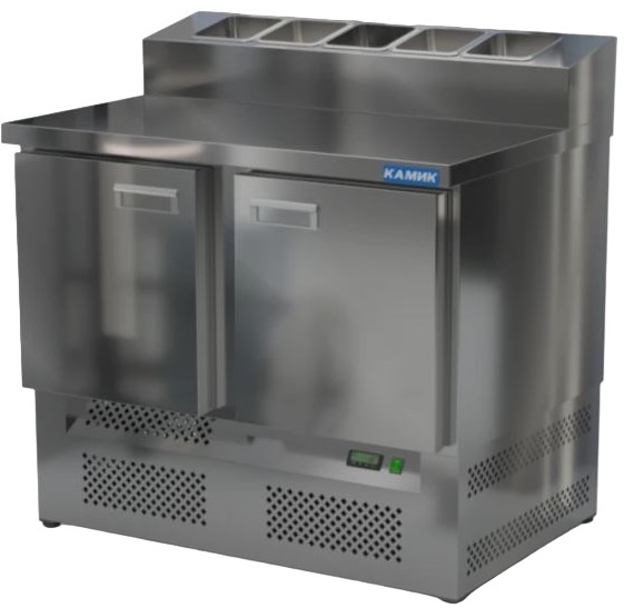 Холодильный стол КАМИК СОП-201076Н используется на предприятиях общественного питания и торговли для охлаждения и хранения продуктов, напитков и готовых блюд, а также для раскатки теста и обработки ингредиентов для приготовления пиццы. Конструкция разделена на секции, каждая из которых оборудована сетчатой полкой и парой направляющих. Корпус выполнен из нержавеющей стали AISI 430 толщиной 1 мм, столешница - из нержавеющей стали AISI 304 толщиной 1 мм.