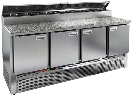 Охлаждаемый стол для пиццы HICOLD PZE2-1111/GN (1/6H) выполнен из нержавеющей стали . Верх стола накрыт  каменной столешницей.