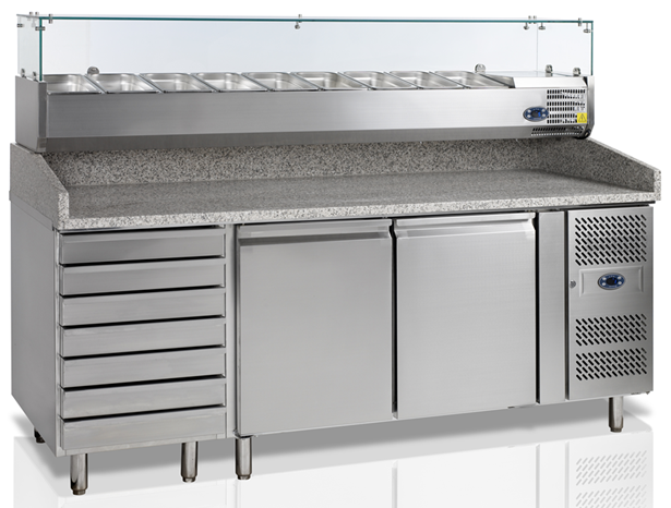 Стол для пиццы TEFCOLD PT1310 используется на предприятиях общественного питания и торговли для обработки ингредиентов, используемых для приготовления пиццы, охлаждения и кратковременного хранения продуктов. Корпус и внутренняя обшивка выполнены из нержавеющей стали AISI 304.