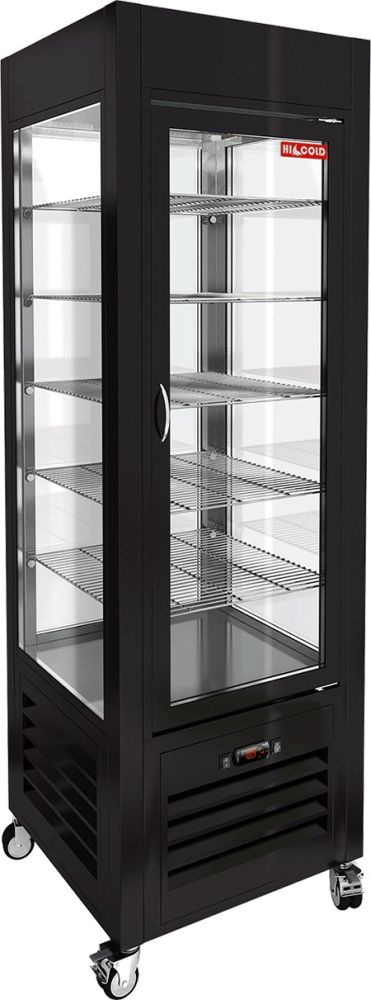 Кондитерская витрина HICOLD VRC 350 Black используется на предприятиях общественного питания и торговли для демонстрации, охлаждения и кратковременного хранения кондитерских изделий и десертов. Модель оснащена 5 полками, светодиодной подсветкой и колесами со стопорами. Корпус выполнен из окрашенной стали.