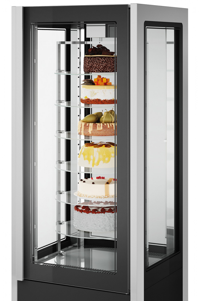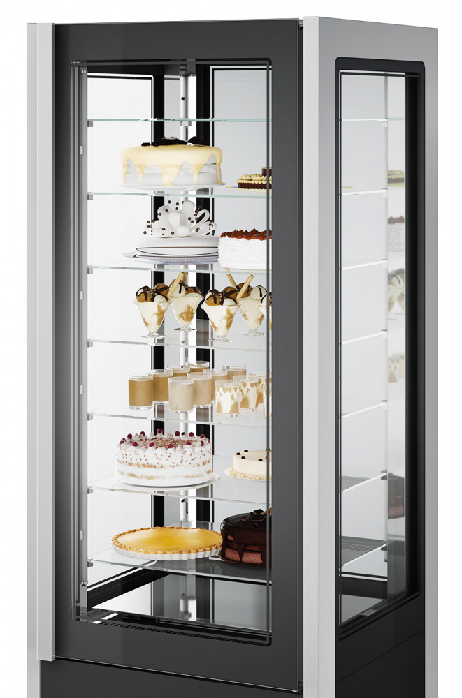 Кондитерский шкаф ISA Cristal Tower 75 H206 RV TB/TN используется на предприятиях общественного питания и торговых точках для демонстрации, охлаждения и краткосрочного хранения кондитерских изделий и десертов, а также для глубокой заморозки продуктов. Материал корпуса - окрашенный металл, изоляция выполнена из пенополиуретана, вспененного углекислотой (без использования озоноразрушающих веществ). Электронная панель управления с системой Touch Pad. Максимальная температура окружающей среды - 30°. Шкаф остеклён с четырех сторон закалённым двойным стеклом и имеет встроенное внутреннее LED освещение.