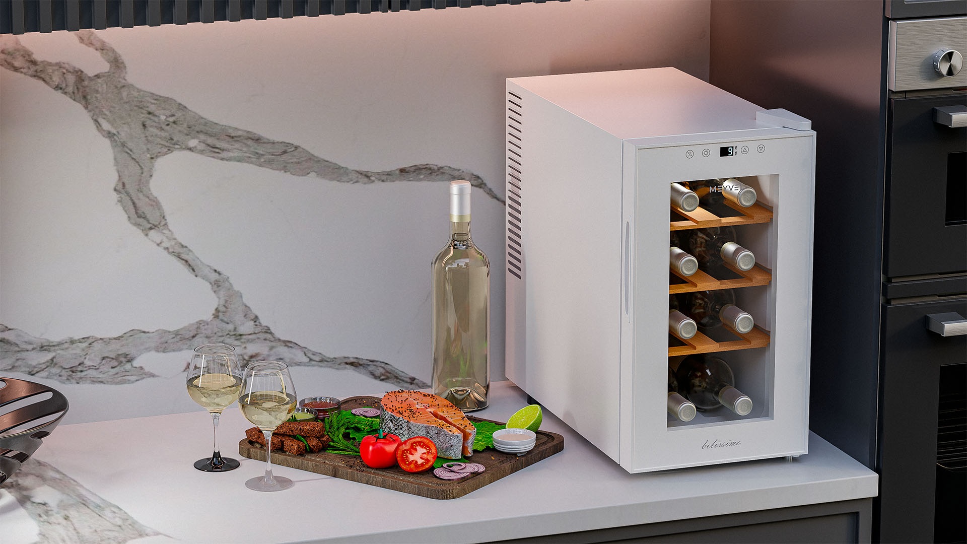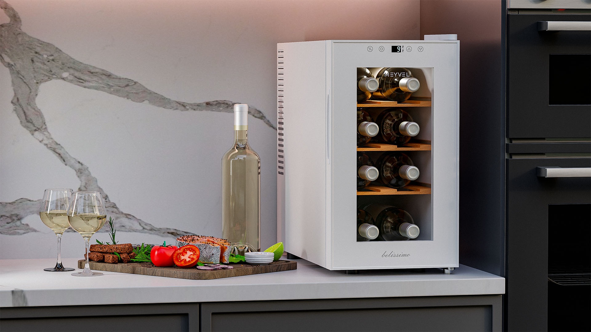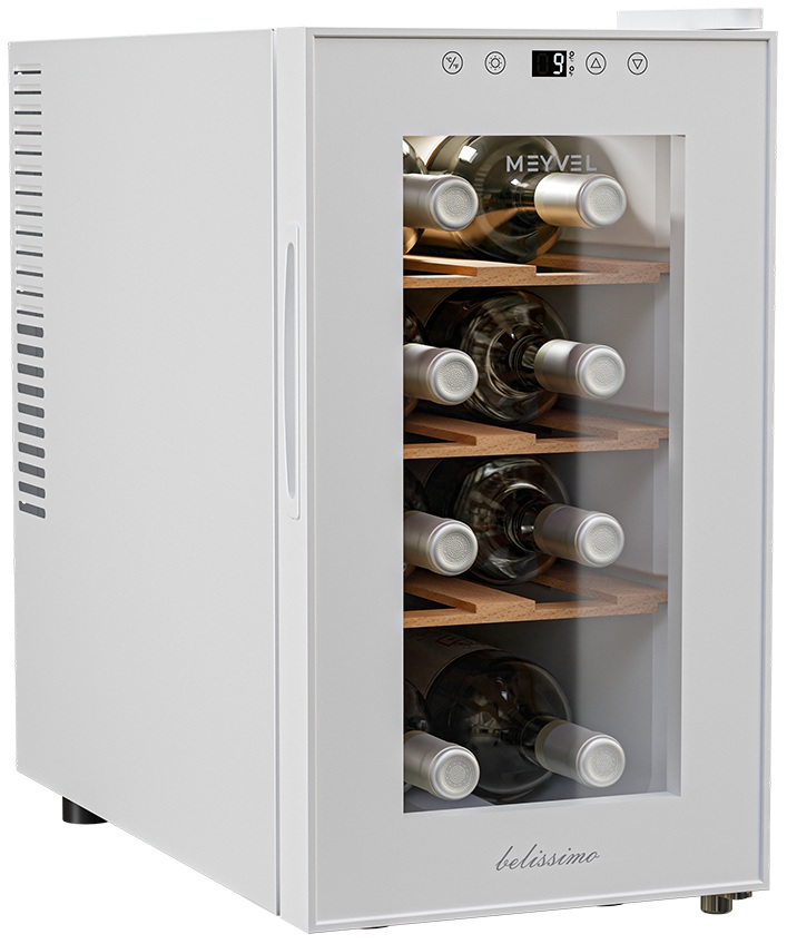 Винный шкаф Meyvel MV08-TWF1-Next используется на предприятиях общественного питания, торговли, пищевых производствах и в домашних условиях для демонстрационной выкладки, хранения и создания температурных условий, сохраняя все вкусовые свойства вина. Модель оснащена сенсорным управлением, электронным термостатом, LED-подсветкой, выдвижными полками, утопленной ручкой, регулируемыми ножками и поддоном для сбора конденсата. Материал корпуса - окрашенная сталь в белый цвет, материал двери - стекло с защитой от УФ-лучей, материал полок - натуральный бук.