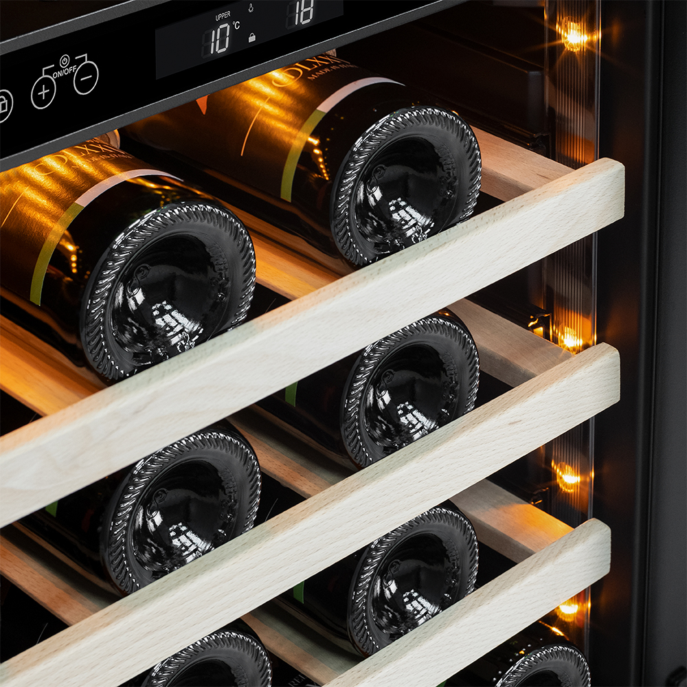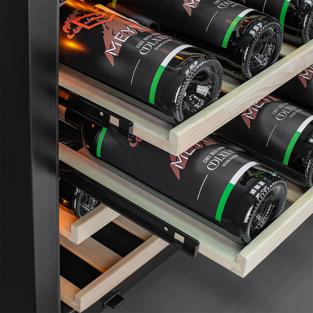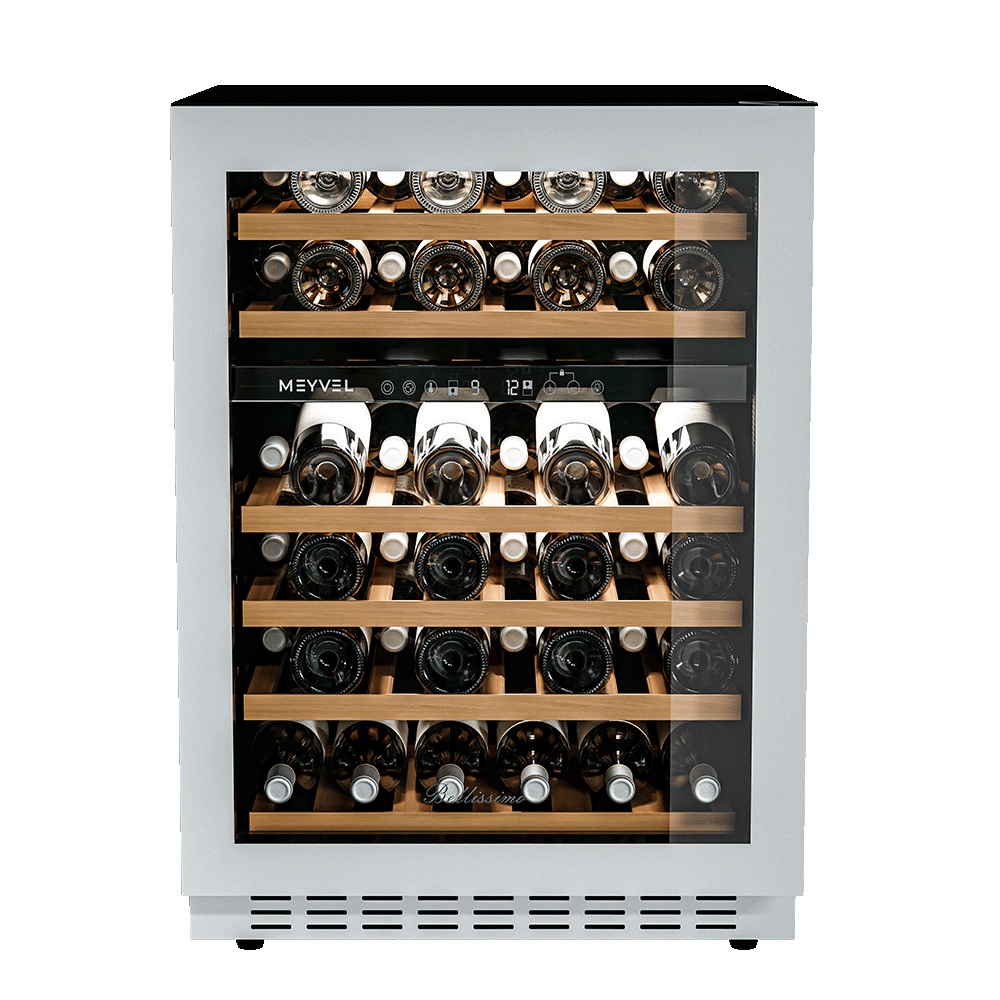 Винный шкаф Meyvel MV46NH-KWT2 используется на предприятиях общественного питания, торговли, пищевых производствах и в домашних условиях для демонстрационной выкладки, хранения и создания температурных условий, сохраняя все вкусовые свойства вина. Модель оснащена сенсорным управлением, электронным термостатом, LED-подсветкой, выдвижными полками, скрытой ручкой и регулируемыми ножками. Материал корпуса - окрашенная сталь, материал двери - тройное стекло с защитой от УФ-лучей, материал полок - массив бука.