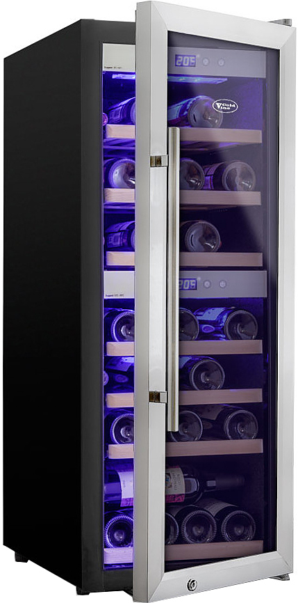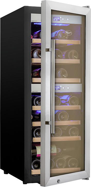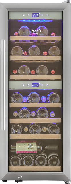 Винный шкаф Cold Vine C38-KSF2 создает оптимальные условия для сохранения всех вкусовых свойств разливного вина. Модель оснащена встроенным вентилятором, 7 деревянными полками, 6 из которых на метабоксах и голубой светодиодной подсветкой. Корпус выполнен из окрашенной в черный цвет стали, дверь со стальной рамой - из тонированного стеклопакета с защитой от УФ-излучения.