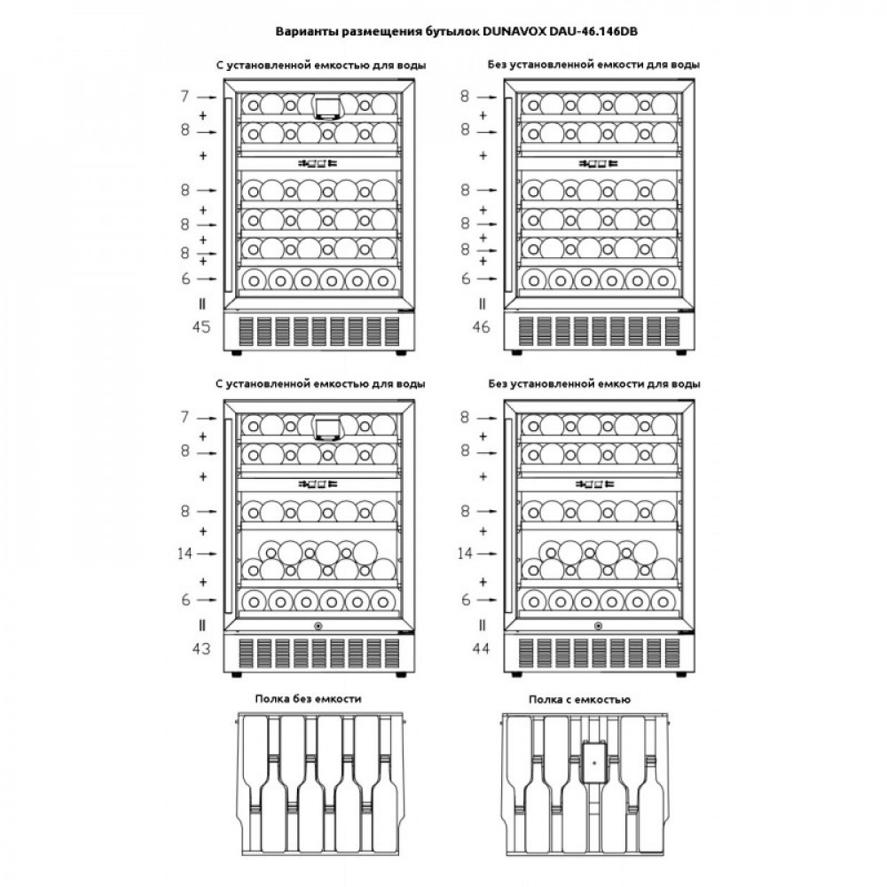 - Без установленной емкости для воды: 46 / 44 бут.