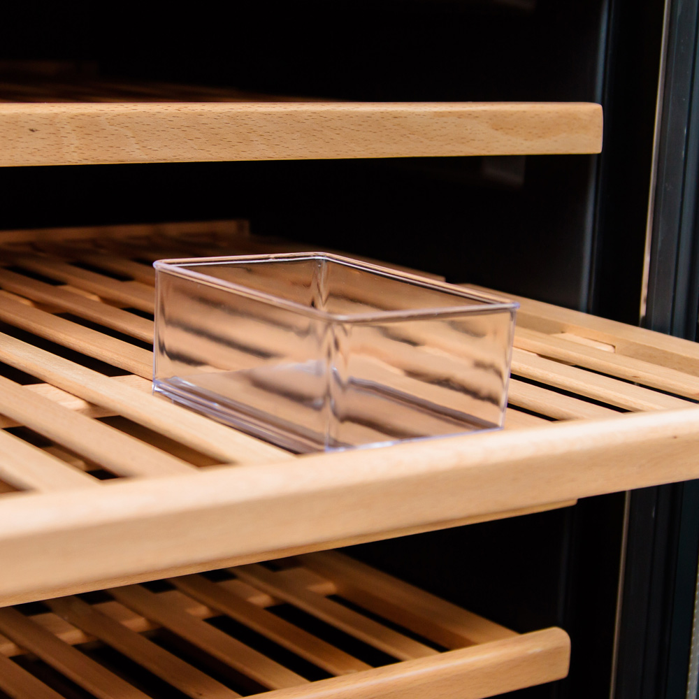 Винный шкаф IP Industrie JG 168-6 A X серии Easy используется для создания оптимальных условий и сохранения всех вкусовых свойств разливного вина на предприятиях общественного питания, торговли и пищевых производствах. Модель оснащена сенсорным управлением, электронным термостатом, автоматической разморозкой, полками, замком и подсветкой. Материал корпуса - сталь, материал двери - двойное стекло с защитой от УФ-лучей, материал рамы двери - высококачественная нержавеющая сталь черного цвета, материал полок - массив дуба.
