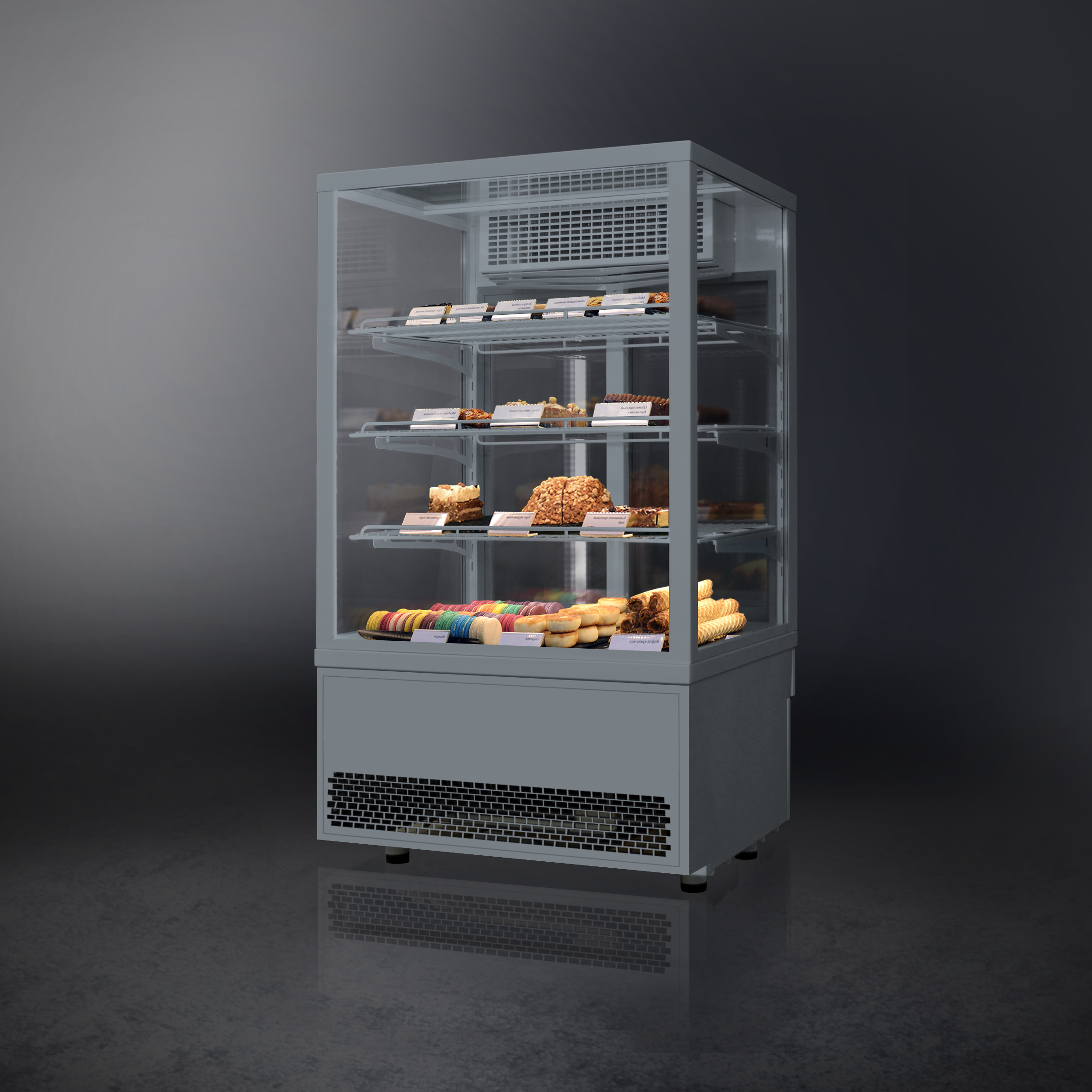 - Прозрачное остекление для оптимального обзора выкладки с 4 сторон