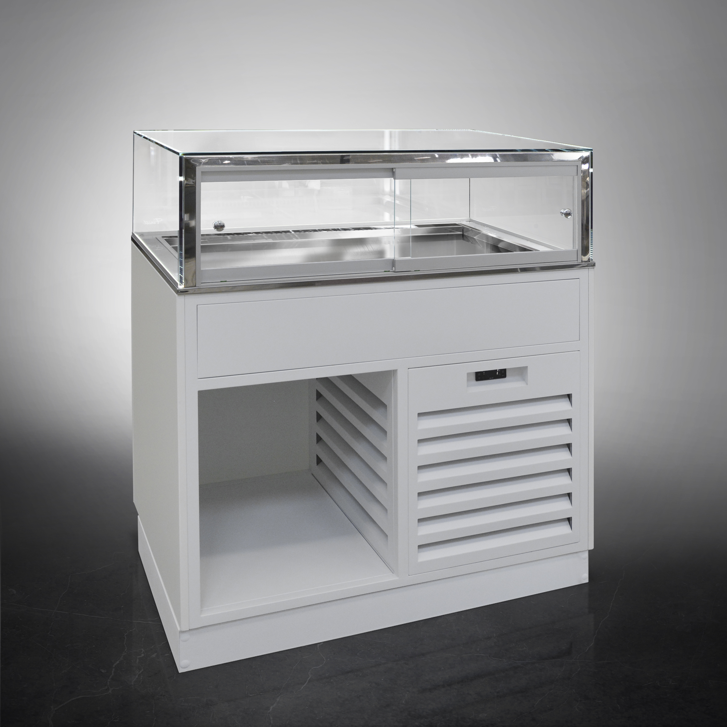 Холодильная витрина Finist GLASSIER LUX GL-13/7/3 используется для демонстрационной выкладки, охлаждения и хранения кондитерских и хлебобулочных изделий на предприятиях общественного питания и торговли. Модель оснащена микропроцессорным блоком, автоматической оттайкой, цоколем, светодиодной подсветкой и удобными дверцами купе. Материал фронтальных и боковых панелей облицовки - МДФ панели, материал купола - просветленное стекло, материал дна - высококачественная нержавеющая сталь.