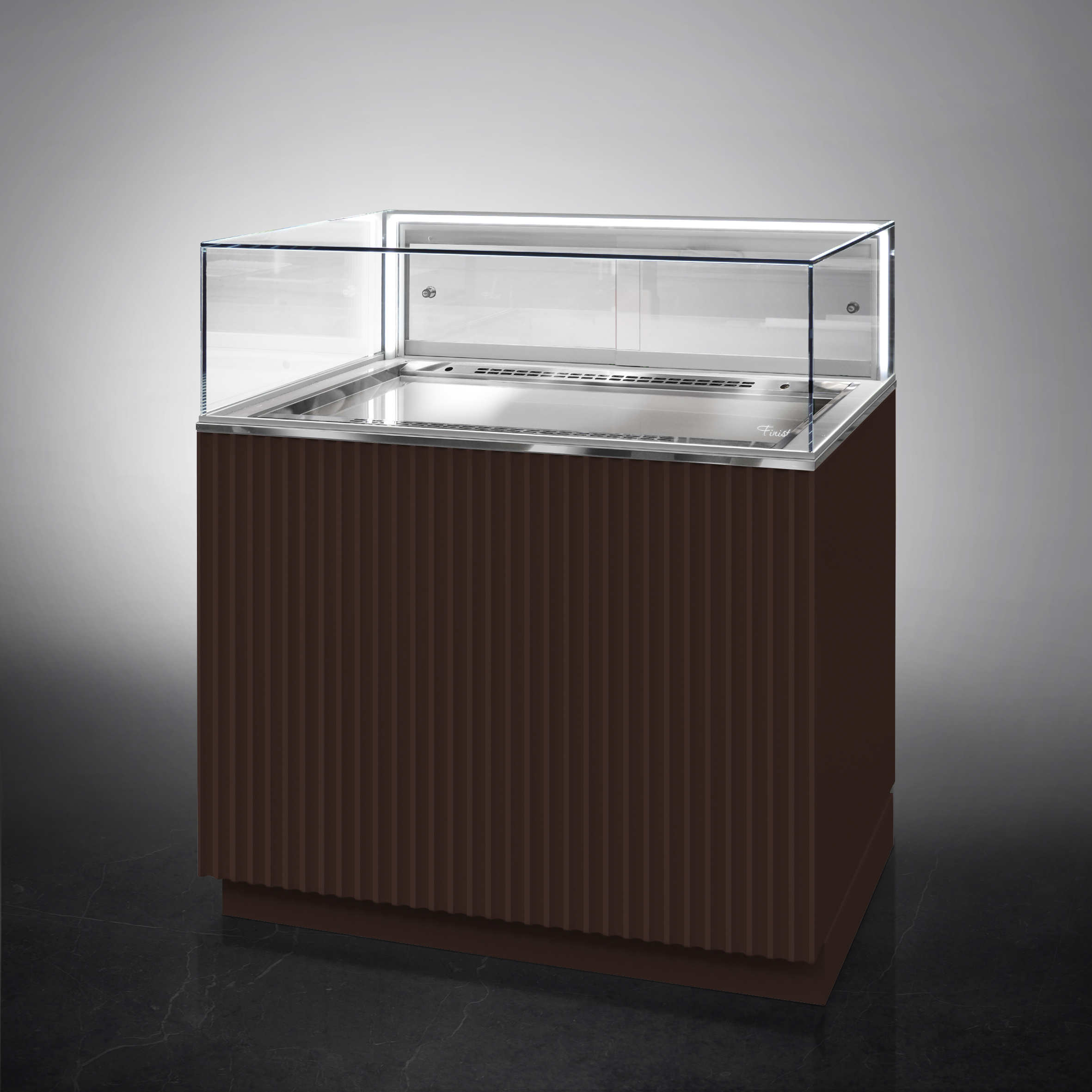 Холодильная витрина Finist GLASSIER LUX GL812-15/55/5 используется для демонстрационной выкладки, охлаждения и хранения кондитерских и хлебобулочных изделий на предприятиях общественного питания и торговли. Модель оснащена микропроцессорным блоком, автоматической оттайкой, цоколем, светодиодной подсветкой, стеклянной полкой и удобными дверцами купе. Материал фронтальных и боковых панелей облицовки - МДФ панели, материал купола - просветленное стекло, материал дна - высококачественная нержавеющая сталь.