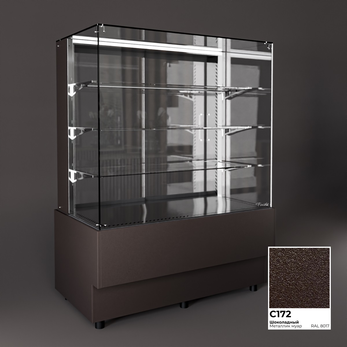 Холодильная витрина Finist AIR A-14-6-163 используется для демонстрационной выкладки, охлаждения и хранения кондитерских и хлебобулочных изделий на предприятиях общественного питания и торговли. Модель оснащена микропроцессорным блоком, автоматической оттайкой, светодиодной подсветкой каждой полки, 3 стеклянными полками и удобными дверцами купе. Материал цельнозаливного корпуса - окрашенная сталь, материал купола и полок - просветленное стекло, материал дна - зеркальная нержавеющая сталь.