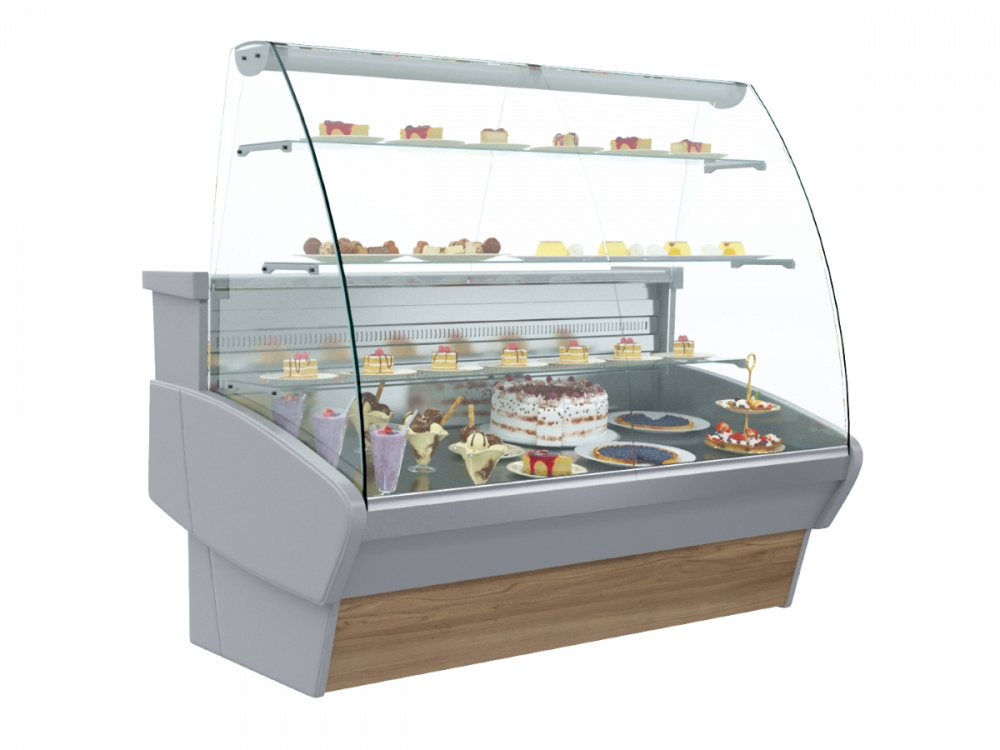 Кондитерская витрина Carboma K95 SM 1,2-1 (ВХСд-1,2) используется на предприятиях общественного питания и торговли для демонстрации, охлаждения и кратковременного хранения тортов, пирожных и других кондитерских изделий. Модель оснащена гнутым передним стеклом, 3 полками, выдвижными поддонами и регулируемыми ножками высотой от 20 до 35 м. Корпус выполнен из стали с ППУ-изоляцией, зона выкладки и столешница - из нержавеющей стали, раздвижные задние створки - из оргстекла.