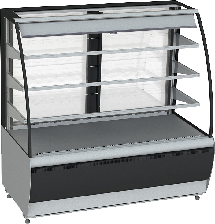 Открытая кондитерская витрина KAYMAN K-ВК-1300 предназначена для охлаждения, кратковременного хранения и демонстрации выпечки, тортов, пирожных и пиццы на предприятиях общественного питания и торговли. Модель оснащена холодильным агрегатом Danfoss SC15CL или Aspera NEU2168GK. Оборудование работает на хладагенте R134a.