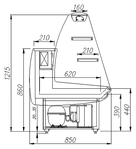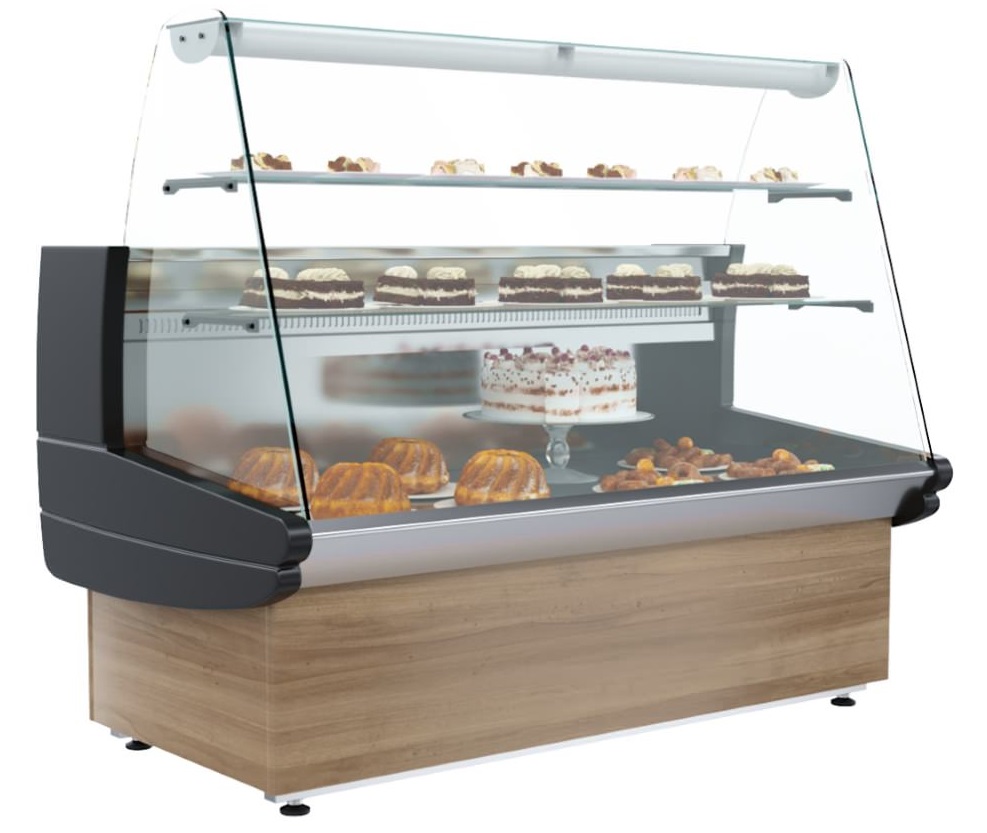 Кондитерская витрина Carboma K85 SM 1,5-1 (ВХСд-1,5 ЭКО) предназначена для демонстрации, охлаждения и кратковременного кондитерских изделий, десертов и сэндвичей на предприятиях общественного питания и торговли. Модель оснащена микропроцессорным блоком управления с индикатором температуры, 2 полками, ночными шторками из органического стекла и регулируемыми ножками высотой от 20 до 35 м. Зона выкладки и столешница выполнены из нержавеющей стали. Корпус имеет пенополиуретановую теплоизоляцию.