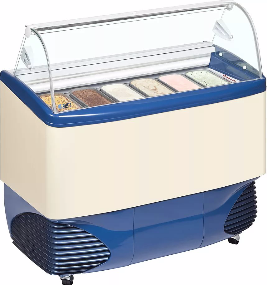 Витрина для мороженого ISA Samoa 12 используется на предприятиях общественного питания и торговли для демонстрации и хранения мороженого, сорбета и йогурт-мороженого. Каркас витрины изготовлен из углеродистой стали, окрашенной порошковой краской, внутренняя и внешняя оболочки - из пластифицированной стали. Цельный корпус имеет изоляцию из пенополиуретана, вспененного углекислотой, без использования озоноразрушающих веществ.