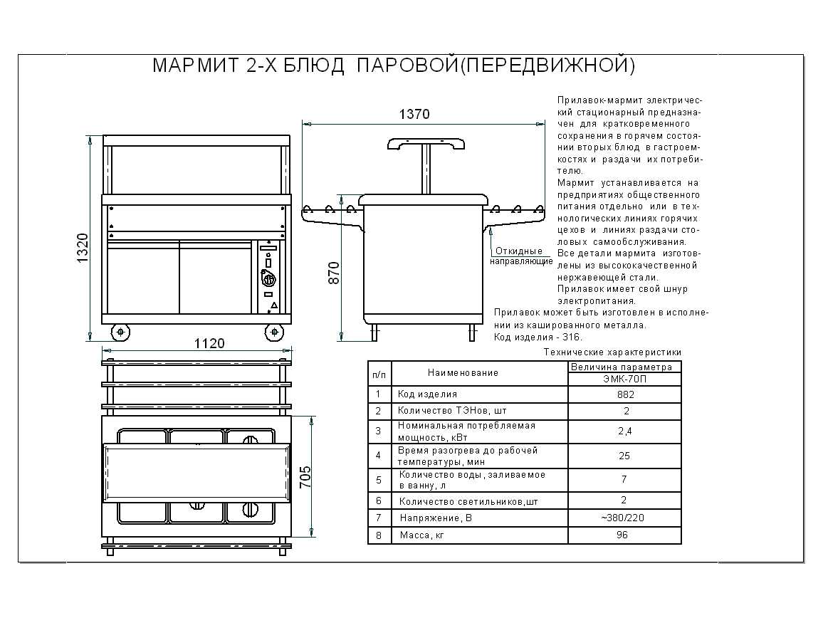 Мармит Abat ЭМК-70ПМ предназначен для демонстрации, кратковременного хранения и поддержания вторых блюд в горячем состоянии в составе линий раздач на предприятиях общественного питания и торговли. Модель оснащена регулируемыми по высоте ножками.