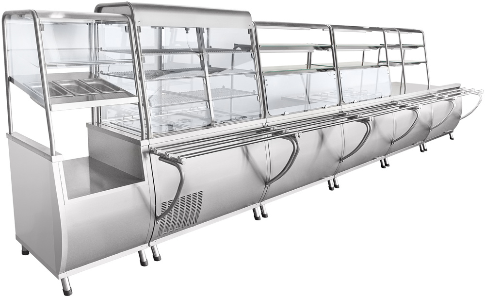 - Гастроёмкости и направляющие для подносов входят в комплект поставки