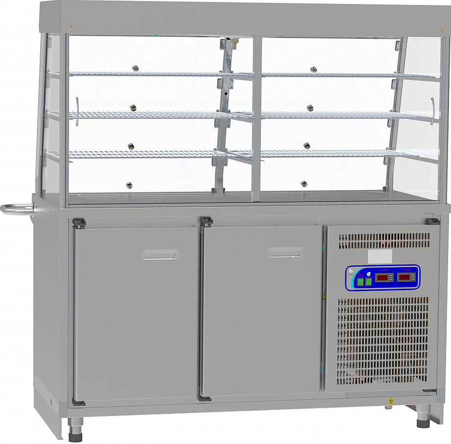 прилавок с холодильной витриной и ванной