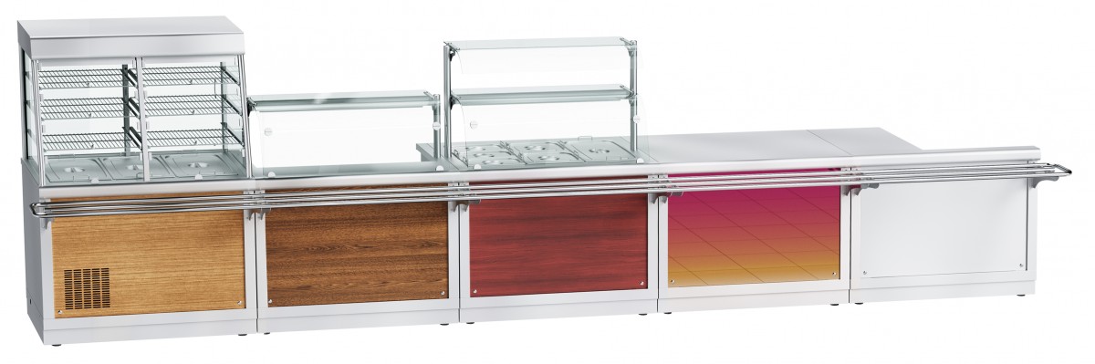 Прилавок-витрина Abat ПВТ-70Х-03 предназначен для демонстрационной выкладки, кратковременного хранения и поддержания в теплом состоянии готовых блюд и закусок в составе линий раздач HOT-LINE на предприятиях общественного питания и торговли. Модель с подогреваемой столешницей. Материал съемных панелей - высококачественная нержавеющая сталь.