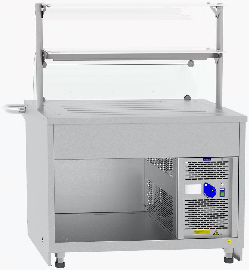 Прилавок Abat ПВВ(Н)-70Х-06-НШ предназначен для демонстрационной выкладки, кратковременного хранения и охлаждения различных блюд в составе линий раздач HOT-LINE на предприятиях общественного питания и торговли. Модель с охлаждаемой столешницей, 2 полками, LED-подсветкой, шкафом для хранения инвентаря и регулируемыми ножками. Материал съемных панелей - высококачественная нержавеющая сталь.