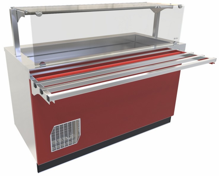 Прилавок-витрина Abat ПВВ(Н)-70Е-01-НШ используется для демонстрационной выкладки, охлаждения, кратковременного хранения закусок, третьих блюд и напитков в составе линий раздач на предприятиях общественного питания, торговли и пищевых производствах. Модель со светодиодной подсветкой, нейтральным шкафом для хранения кухонного инвентаря и регулируемыми по высоте ножками.