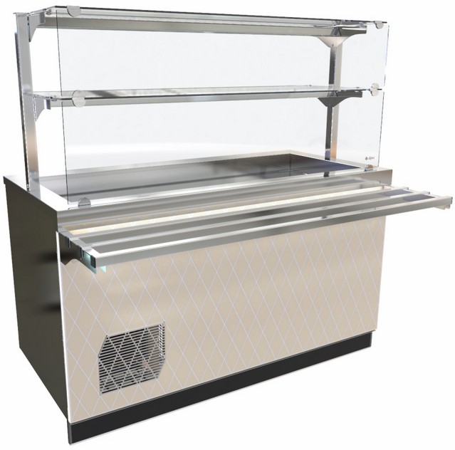 Прилавок-витрина Abat ПВВ(Н)-70Е-03-НШ используется для демонстрационной выкладки, охлаждения, кратковременного хранения закусок, третьих блюд и напитков в составе линий раздач на предприятиях общественного питания, торговли и пищевых производствах. Модель со светодиодной подсветкой, 2 полками, нейтральным шкафом для хранения кухонного инвентаря и регулируемыми по высоте ножками.