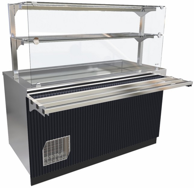 Прилавок-витрина Abat ПВВ(Н)-70Е-03-НШ используется для демонстрационной выкладки, охлаждения, кратковременного хранения закусок, третьих блюд и напитков в составе линий раздач на предприятиях общественного питания, торговли и пищевых производствах. Модель со светодиодной подсветкой, 2 полками, нейтральным шкафом для хранения кухонного инвентаря и регулируемыми по высоте ножками.