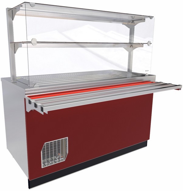 Прилавок-витрина Abat ПВВ(Н)-70Е-07-НШ используется для демонстрационной выкладки, охлаждения, кратковременного хранения закусок, третьих блюд и напитков в составе линий раздач на предприятиях общественного питания, торговли и пищевых производствах. Модель оснащена охлаждаемой поверхностью, со светодиодной подсветкой, 2 полками, нейтральным шкафом для хранения кухонного инвентаря и регулируемыми по высоте ножками.