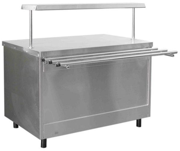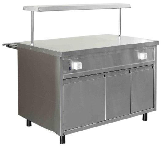 Нейтральный прилавок Тулаторгтехника ПН-1(3) предназначен для демонстрации и кратковременного хранения напитков и различных блюд в составе линий раздач на предприятиях общественного питания и торговли для. Модель оснащена полкой с подсветкой, розеткой, нейтральным шкафом с дверками и регулируемыми по высоте опорами, что позволяет компенсировать неровности пола. Изделие выполнено из пищевой нержавеющей стали.