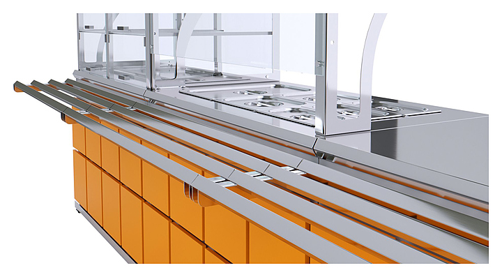 Прилавок Luxstahl ПНП (С) -1500 Premium используется в составе линии раздачи на предприятиях общественного питания и торговли для кратковременного хранения и демонстрации различных блюд, хлеба и хлебобулочных изделий. Модель оснащена верхней полкой и регулируемыми опорами. Материал каркаса - высококачественная нержавеющая сталь AISI 430.