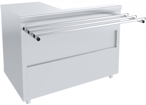 Кассовый стол Пищевые Технологии Лира-Профи СК/ЛП предназначен для расчета с потребителями и установки на него кассового аппарата в составе линий раздач на предприятиях общественного питания и торговли. Модель оснащена штепсельной розеткой со штырем заземления 16 А, поручнем, направляющими для подносов и регулируемыми по высоте ножками. Корпус выполнен из нержавеющей стали.