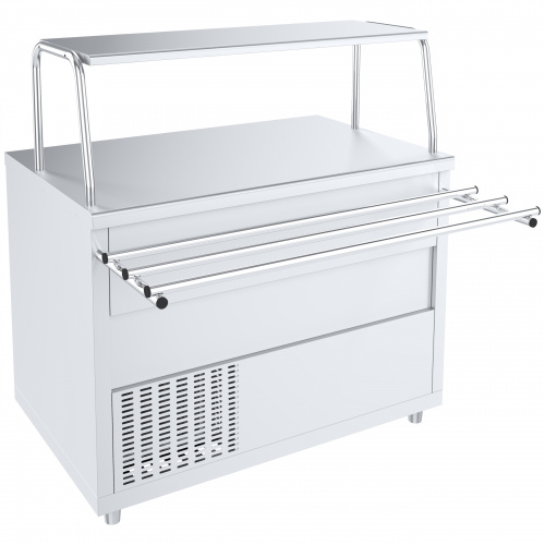 Холодильный стол Пищевые Технологии Лира-Профи СОЭП/ЛП-01 предназначен для кратковременного хранения и демонстрации холодных закусок, салатов, охлажденных напитков в составе линий раздач или самостоятельно на предприятиях общественного питания и торговли. Модель оснащена нишей для хранения инвентаря, направляющими для подносов и регулируемыми по высоте ножками. Корпус выполнен из нержавеющей стали.