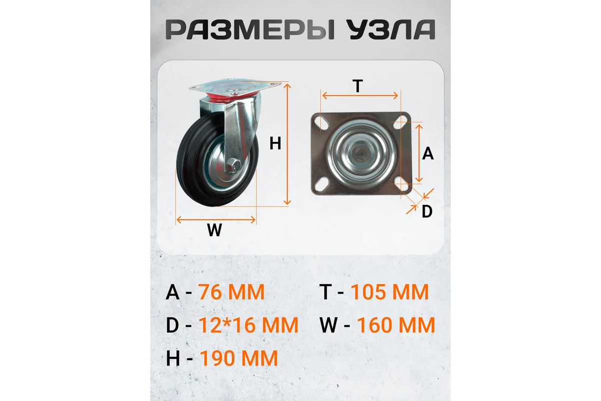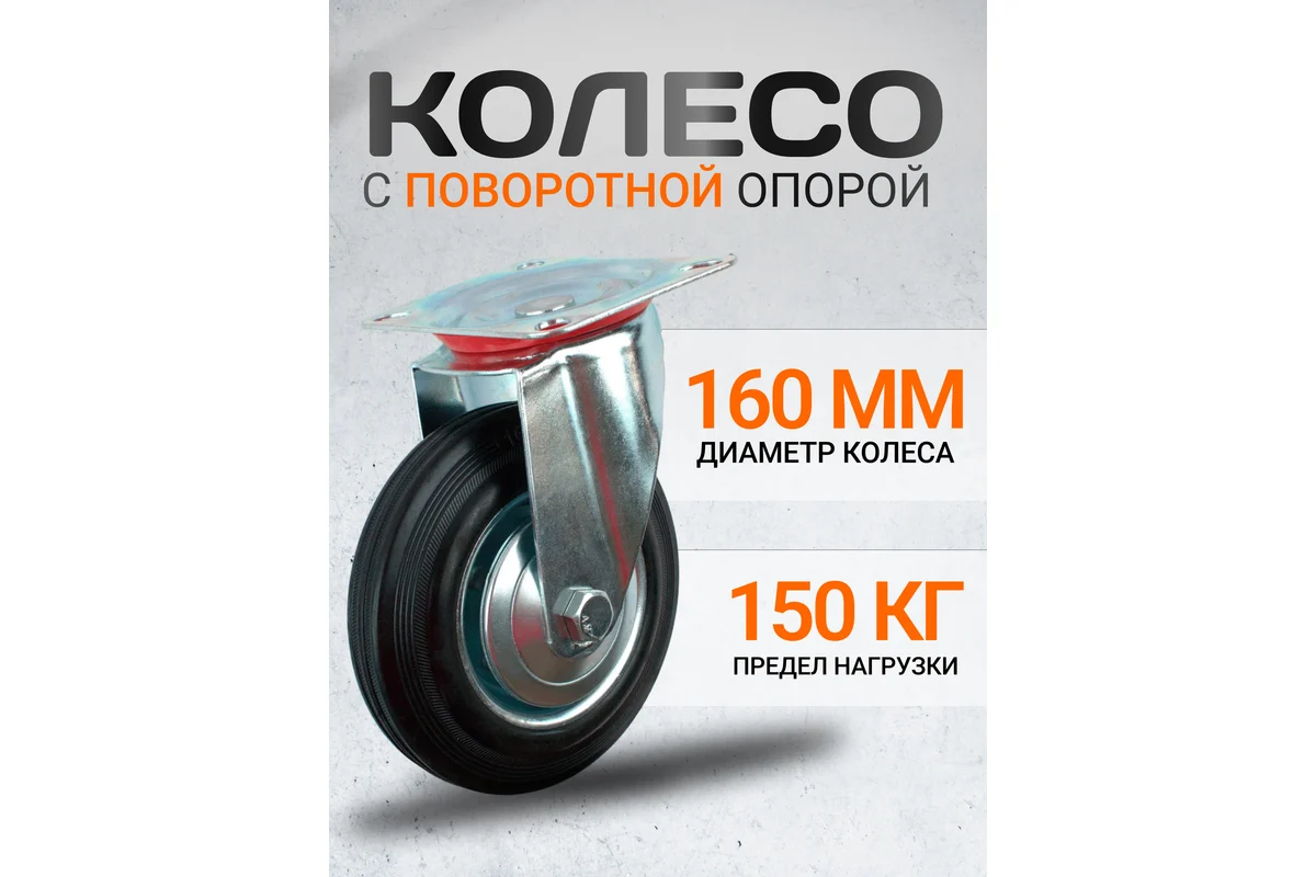 Колесная опора поворотная RAD A 160 71037259 используется для установки на грузовые тележки на предприятиях общественного питания, торговли и пищевых производствах. Материал колес - резина.