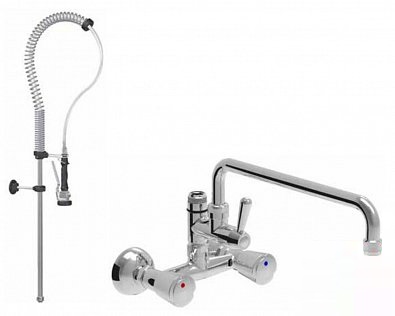 Душирующее устройство RUBINETTERIE DEL FRIULI 00991110 в комплекте со смесителем 00407200 используется на предприятиях общественного питания, торговли и пищевых производствах для ежедневного использования и подачи воды. Модель оборудована смесителем типа "елочка", душем с настенным креплением, поворотным гусаком, а также дополнительным краном. Материал изделия - высококачественная нержавеющая сталь и хромированная латунь.