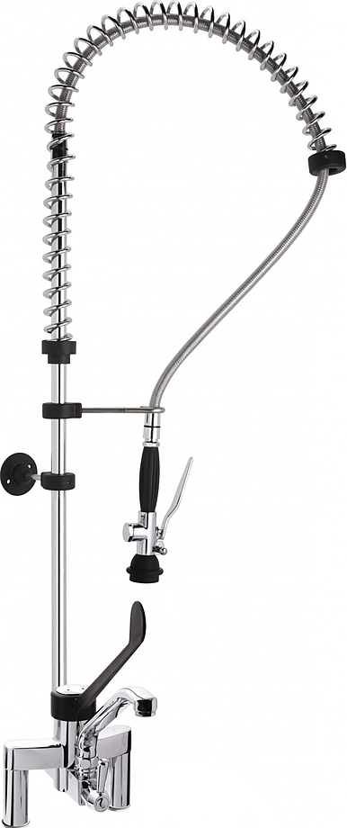 Душирующее устройство Monolith R0102020207 используется на предприятиях общественного питания, торговли и пищевых производствах для удаления остатков пищи с различной посуды и кухонного инвентаря перед загрузкой в посудомоечную машину. Данная модель устанавливается на моечную ванну. Устройство оснащено оснащена рычажным краном для локтевого управления, компактным изливом и лейкой с рычагом и фиксатором, позволяющим обеспечить постоянный напор воды. Материал душа - высококачественная нержавеющая сталь с термопластиком, материал держателя - прочный пластик.