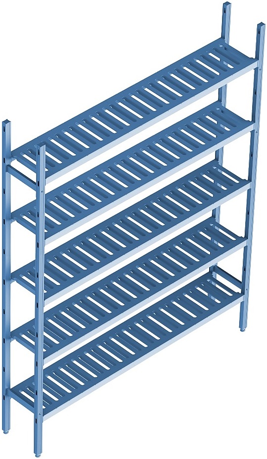 Стеллаж модульный базовый POLAIR LOAD.ME POLY 21AL.5PP40.07B используется на предприятиях общественного питания, торговли, пищевых производствах и складских помещениях. Данная модель может стыковаться с базовой и угловой секцией модульной стеллажной системой. Материал каркаса – анодированный алюминиевый профиль, материал решетчатых полок – армированный полипропилен, материал ножек – прочный сплав.