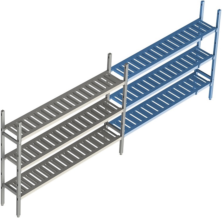 Стеллаж модульный линейный дополнительный POLAIR LOAD.ME POLY 18AL.3PP50.17Е используется на предприятиях общественного питания, торговли, пищевых производствах и складских помещениях. Данная модель может стыковаться с базовой и угловой секцией модульной стеллажной системой. Материал каркаса – анодированный алюминиевый профиль, материал решетчатых полок – армированный полипропилен, материал ножек – прочный сплав.