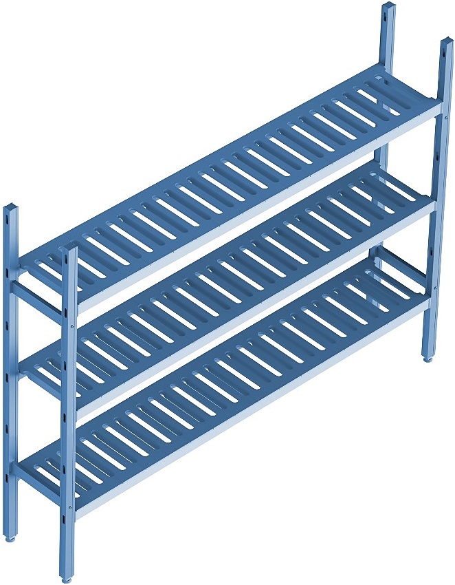 Стеллаж модульный базовый POLAIR LOAD.ME POLY 16AL.3PP50.18B используется на предприятиях общественного питания, торговли, пищевых производствах и складских помещениях. Данная модель может стыковаться с базовой и угловой секцией модульной стеллажной системой. Материал каркаса – анодированный алюминиевый профиль, материал решетчатых полок – армированный полипропилен, материал ножек – прочный сплав.