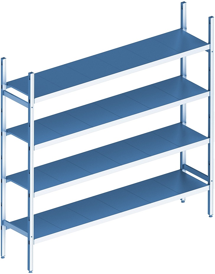 Стеллаж модульный базовый POLAIR LOAD.ME INOX 21AL.4IN30.10B используется на предприятиях общественного питания, торговли, пищевых производствах и складских помещениях. Данная модель может стыковаться с базовой и угловой секцией модульной стеллажной системой. Материал каркаса – анодированный алюминиевый профиль, материал полок – нержавеющая сталь, материал ножек – прочный сплав.